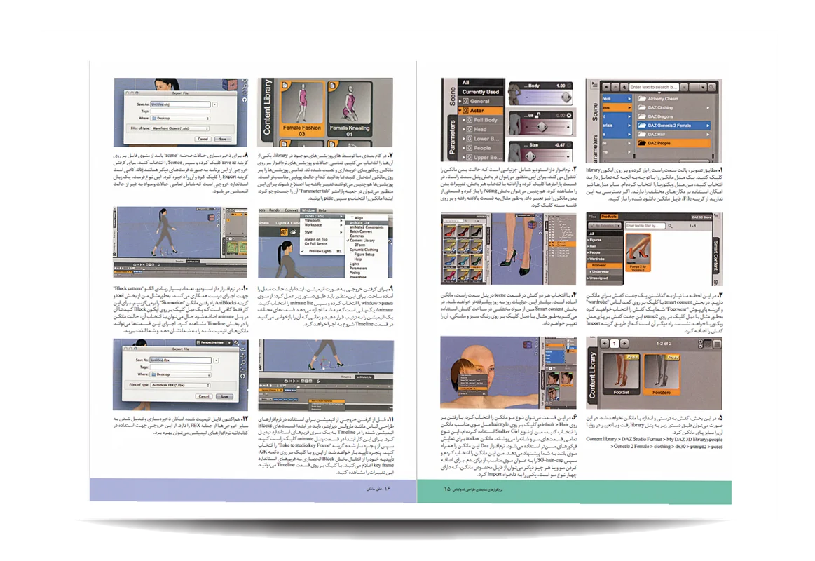 مباحث کتاب نرم افزارهای سه بعدی طراحی مد و لباس:1-خلق مانکن 2-طراحی لباس و پوشاک 3-طراحی و خلق اکسسوری و جواهرات 4-پروژه نهایی 5-آینده مد در دنیای سه بعدی