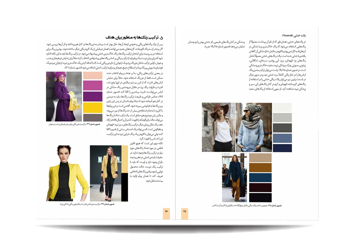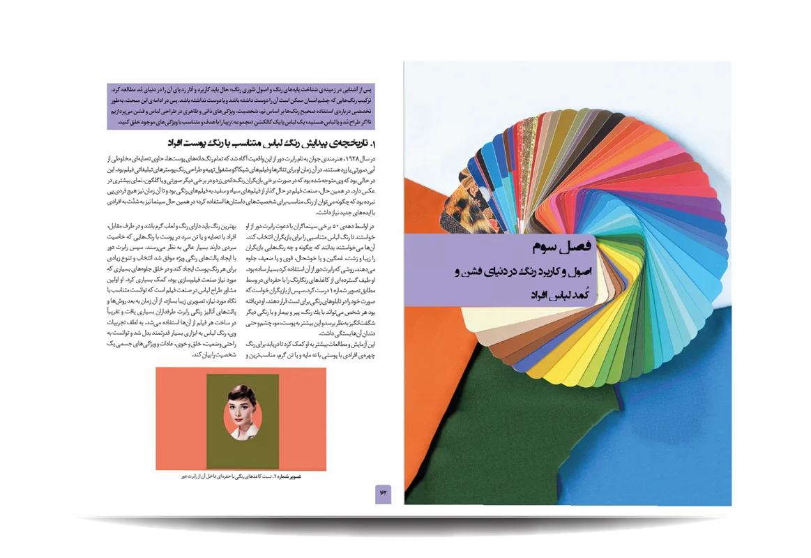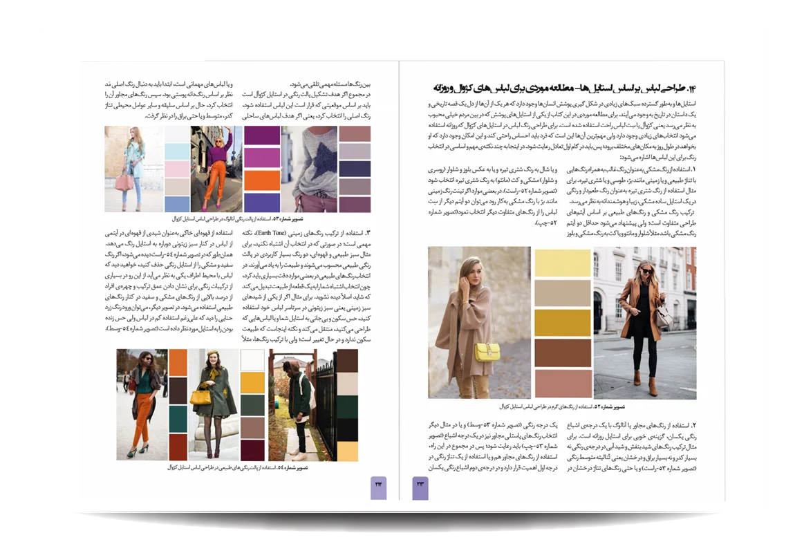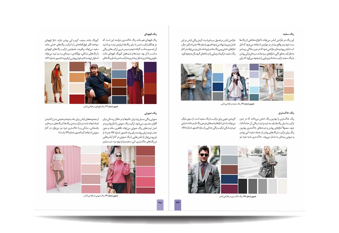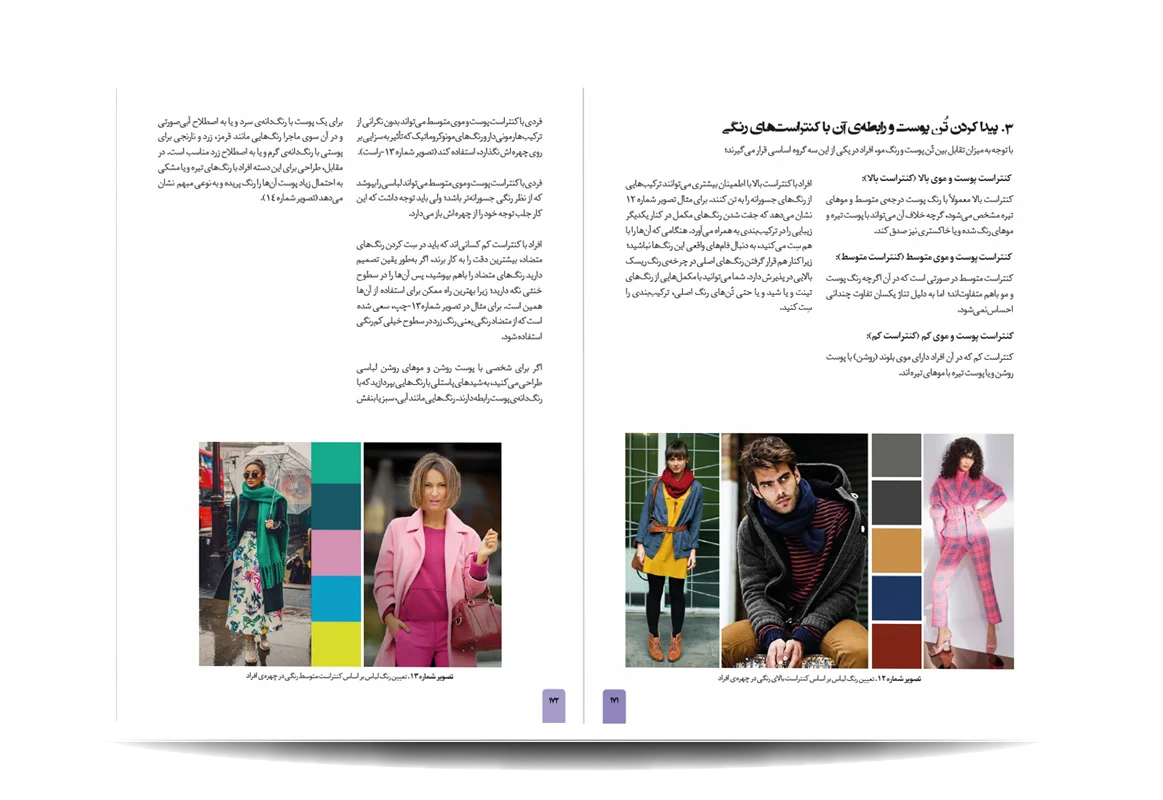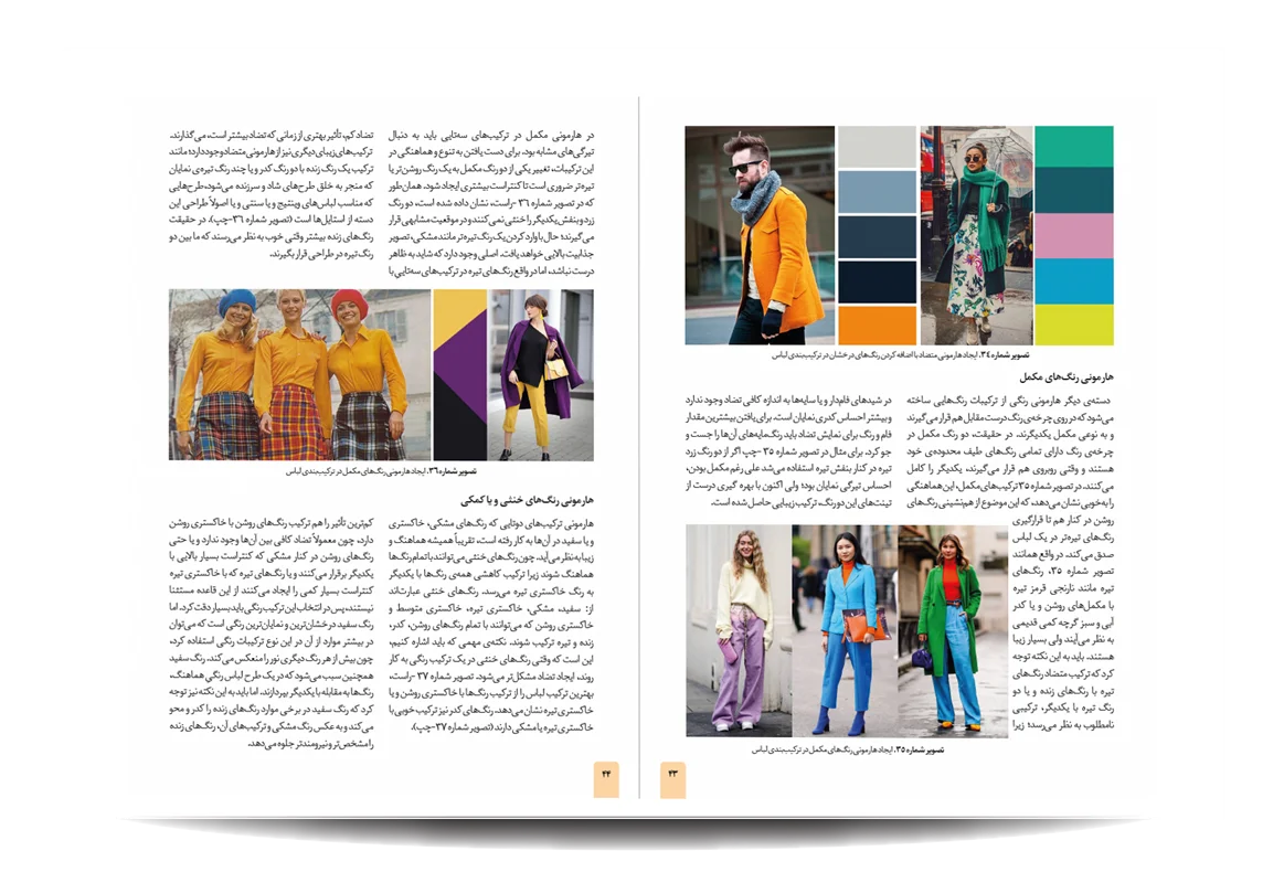 کتاب رنگشناسی تخصصی لباس توسط انتشارات جمال هنر به چاپ رسیده است. معرفی مباحث کتاب رنگ شناسی تخصصی لباس برای طراحان مد: پایه های شناخت رنگ در دنیای فشن-مفاهیم رنگی-چرخه ی رنگ-ویژگی رنگ-پالت های رنگ-ترکیب رنگ ها به منظور بیان هدف-نور رنگی-هماهنگی رنگی-کنتراست رنگی-نشانه های رنگ در تاریخ-باورهای رنگی-روانشناسی رنگ-معانی رنگ-اثر رنگی-جلوه های ویژه ی رنگ ها-حس و حالت رنگ ها-تاریخچه ی پالت ها و تم های رنگی در دنیای طراحی مد و فشن-اصول و کاربرد رنگ در دنیای فشن و کمد لباس افراد-تاریخچه پیدایش رنگ لباس متناسب با رنگ پوست افراد-رنگ ها و پوست بدن-پیدا کردن تن پوست و رابطه ی آن با کنتراست های رنگی-حس یک رنگ در دنیای مد-حس یک رنگ در لباس-معانی رنگ ها در فشن-رنگ ها در طراحی لباس-درک روابط رنگ ها برای در کنار هم قرار دادن لباس ها-نکاتی برای انتخاب درست رنگها در لباس-رنگ ها چگونه به لباس شخصیت می دهند.