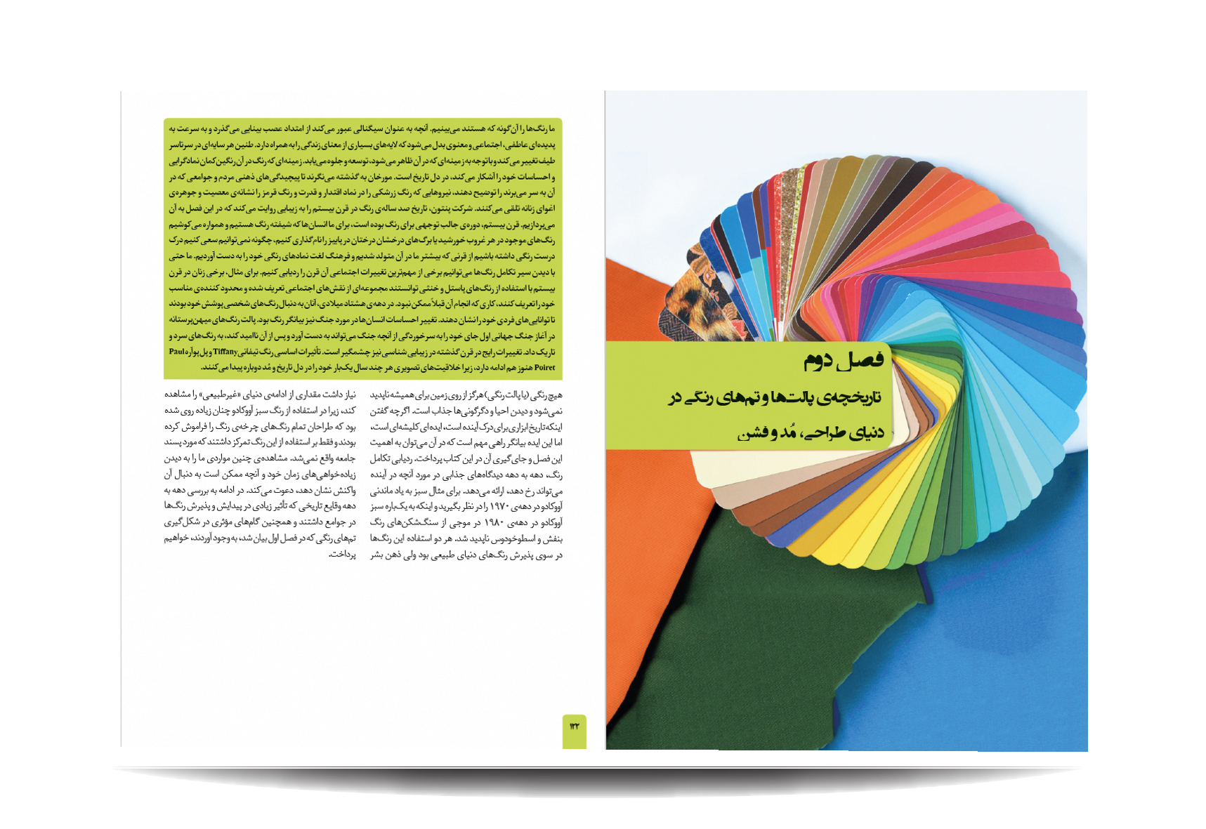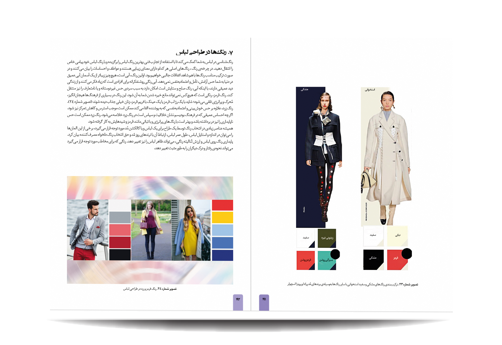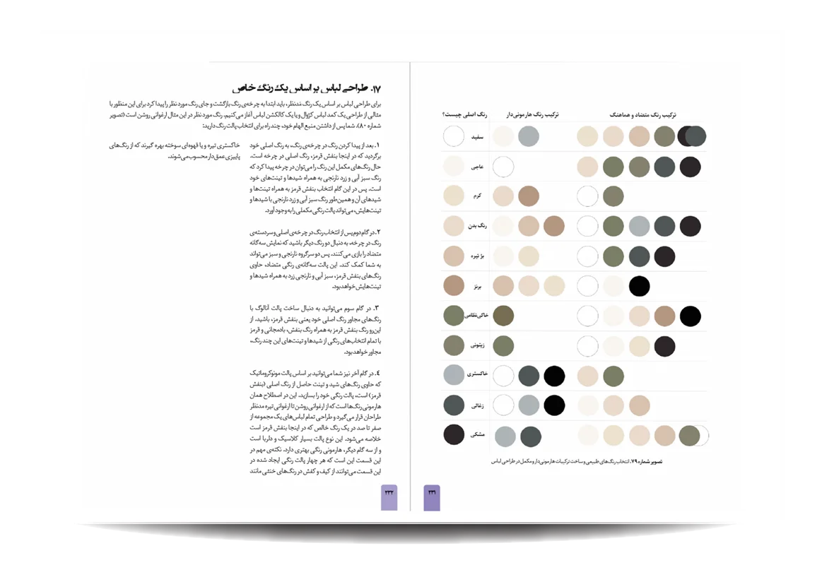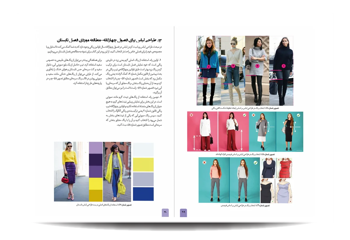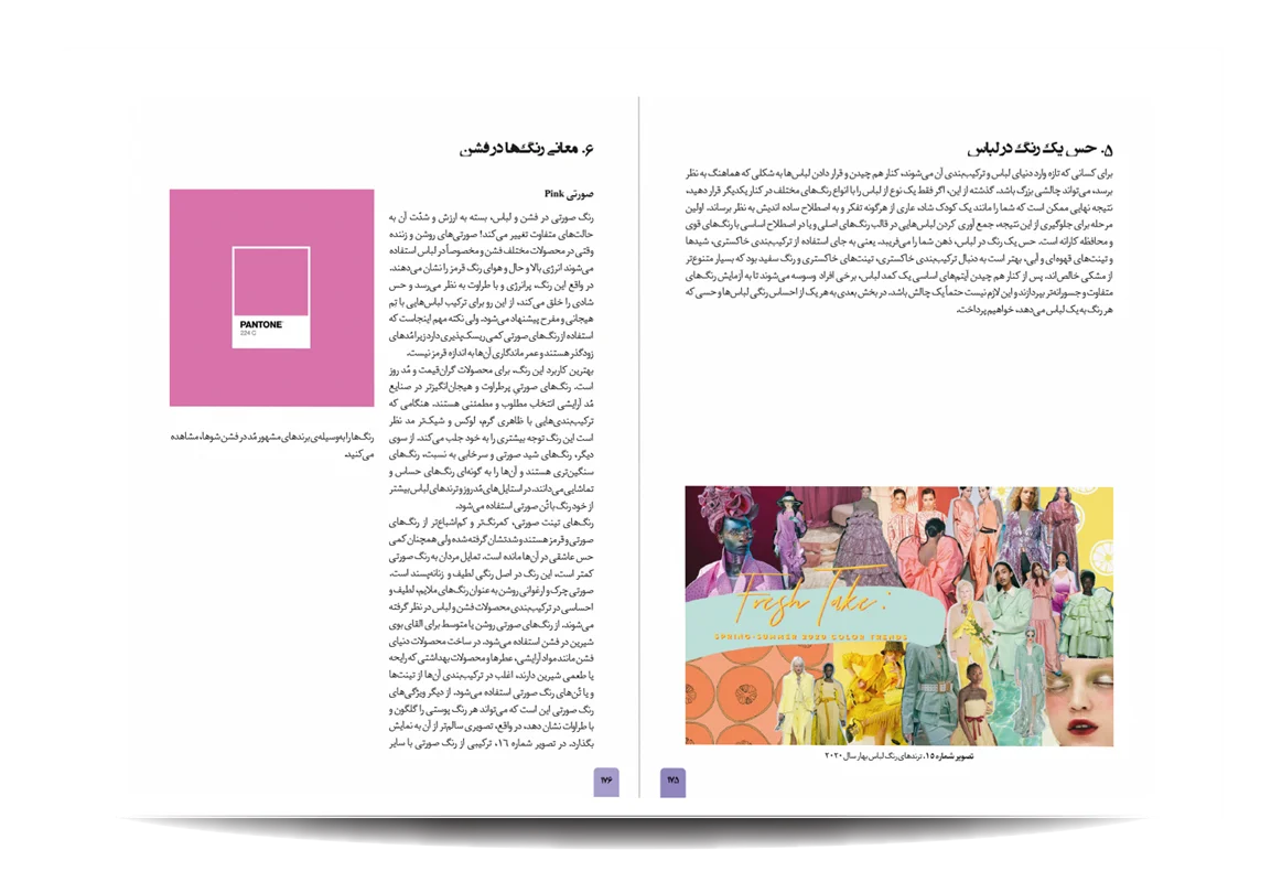 کتاب رنگشناسی تخصصی لباس توسط انتشارات جمال هنر به چاپ رسیده است. معرفی مباحث کتاب رنگ شناسی تخصصی لباس برای طراحان مد: پایه های شناخت رنگ در دنیای فشن-مفاهیم رنگی-چرخه ی رنگ-ویژگی رنگ-پالت های رنگ-ترکیب رنگ ها به منظور بیان هدف-نور رنگی-هماهنگی رنگی-کنتراست رنگی-نشانه های رنگ در تاریخ-باورهای رنگی-روانشناسی رنگ-معانی رنگ-اثر رنگی-جلوه های ویژه ی رنگ ها-حس و حالت رنگ ها-تاریخچه ی پالت ها و تم های رنگی در دنیای طراحی مد و فشن-اصول و کاربرد رنگ در دنیای فشن و کمد لباس افراد-تاریخچه پیدایش رنگ لباس متناسب با رنگ پوست افراد-رنگ ها و پوست بدن-پیدا کردن تن پوست و رابطه ی آن با کنتراست های رنگی-حس یک رنگ در دنیای مد-حس یک رنگ در لباس-معانی رنگ ها در فشن-رنگ ها در طراحی لباس-درک روابط رنگ ها برای در کنار هم قرار دادن لباس ها-نکاتی برای انتخاب درست رنگها در لباس-رنگ ها چگونه به لباس شخصیت می دهند.