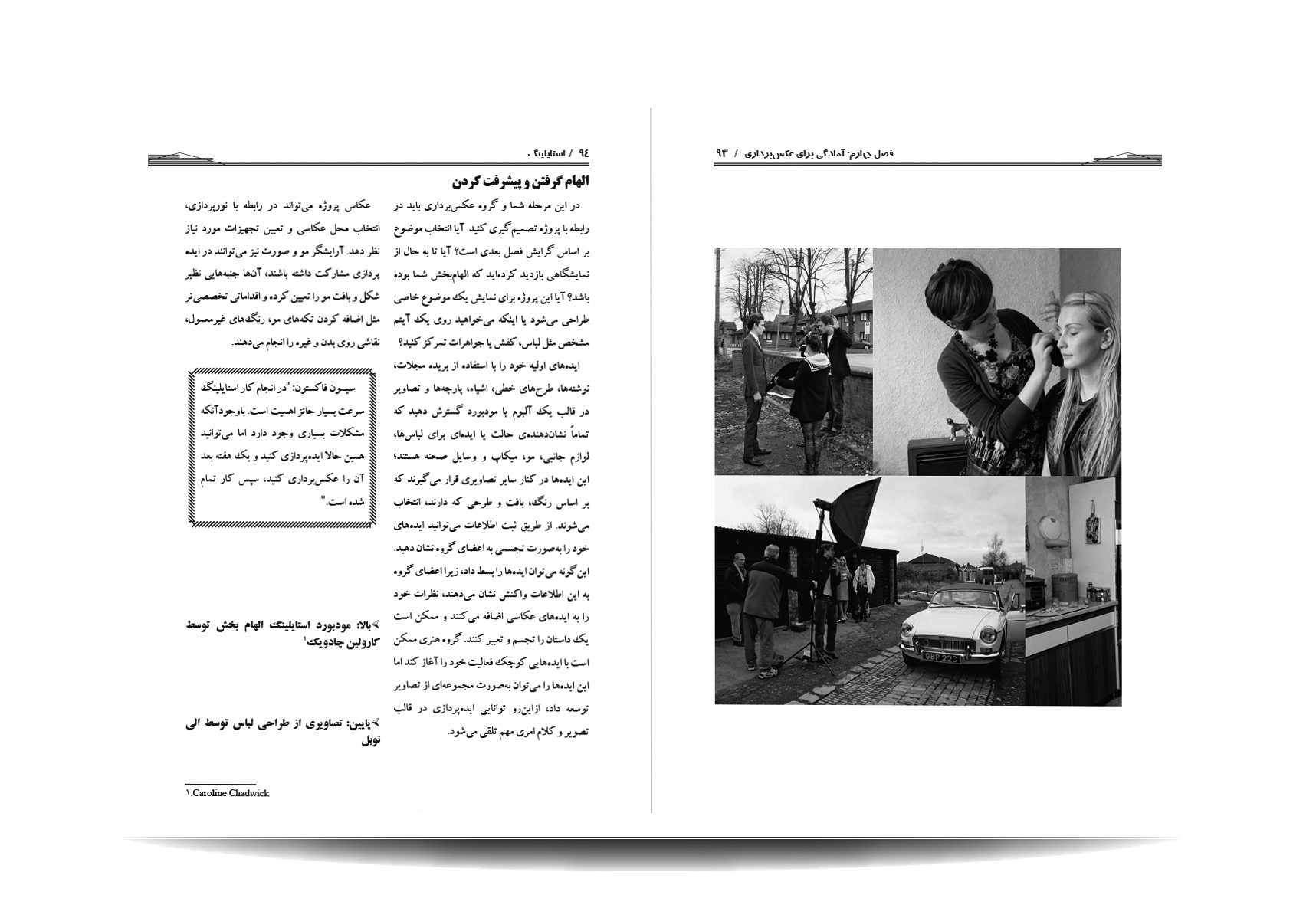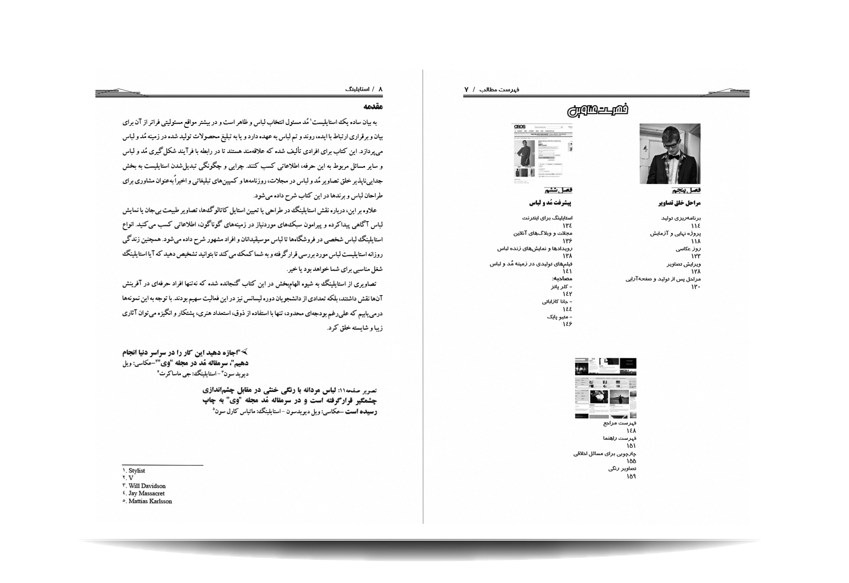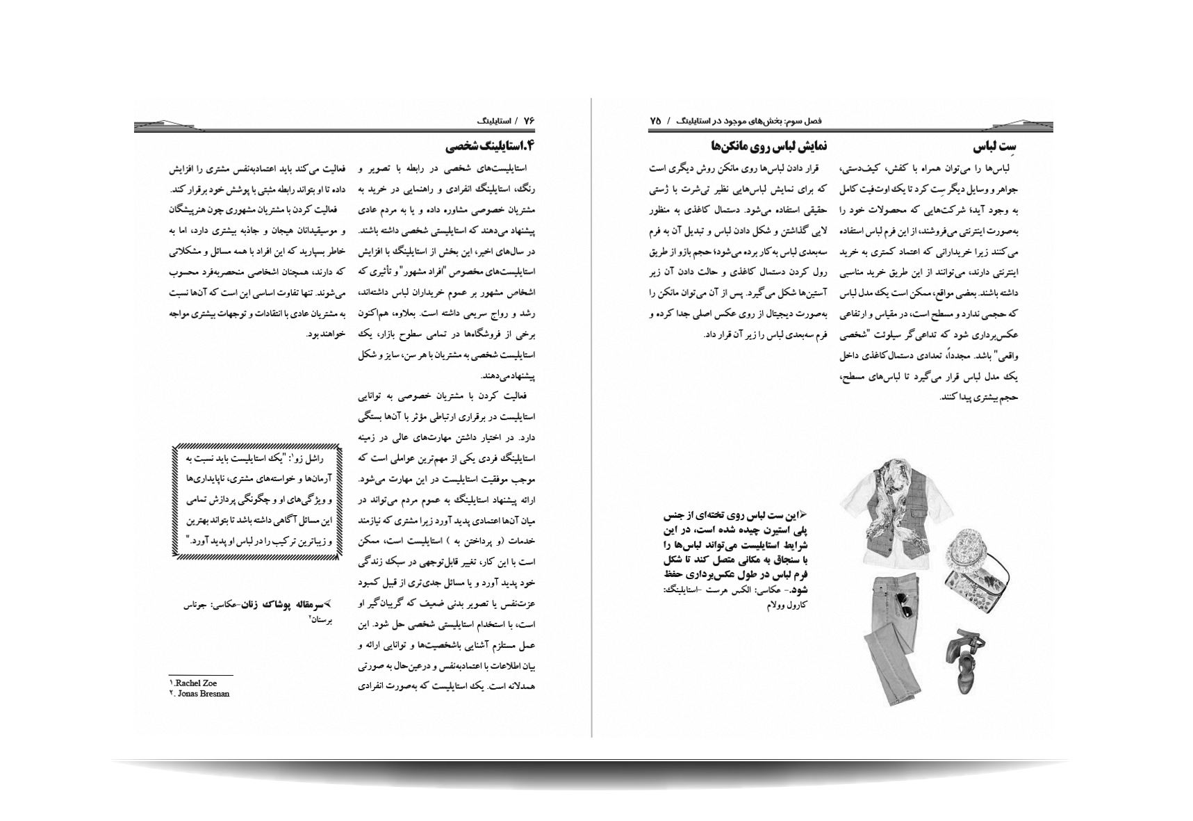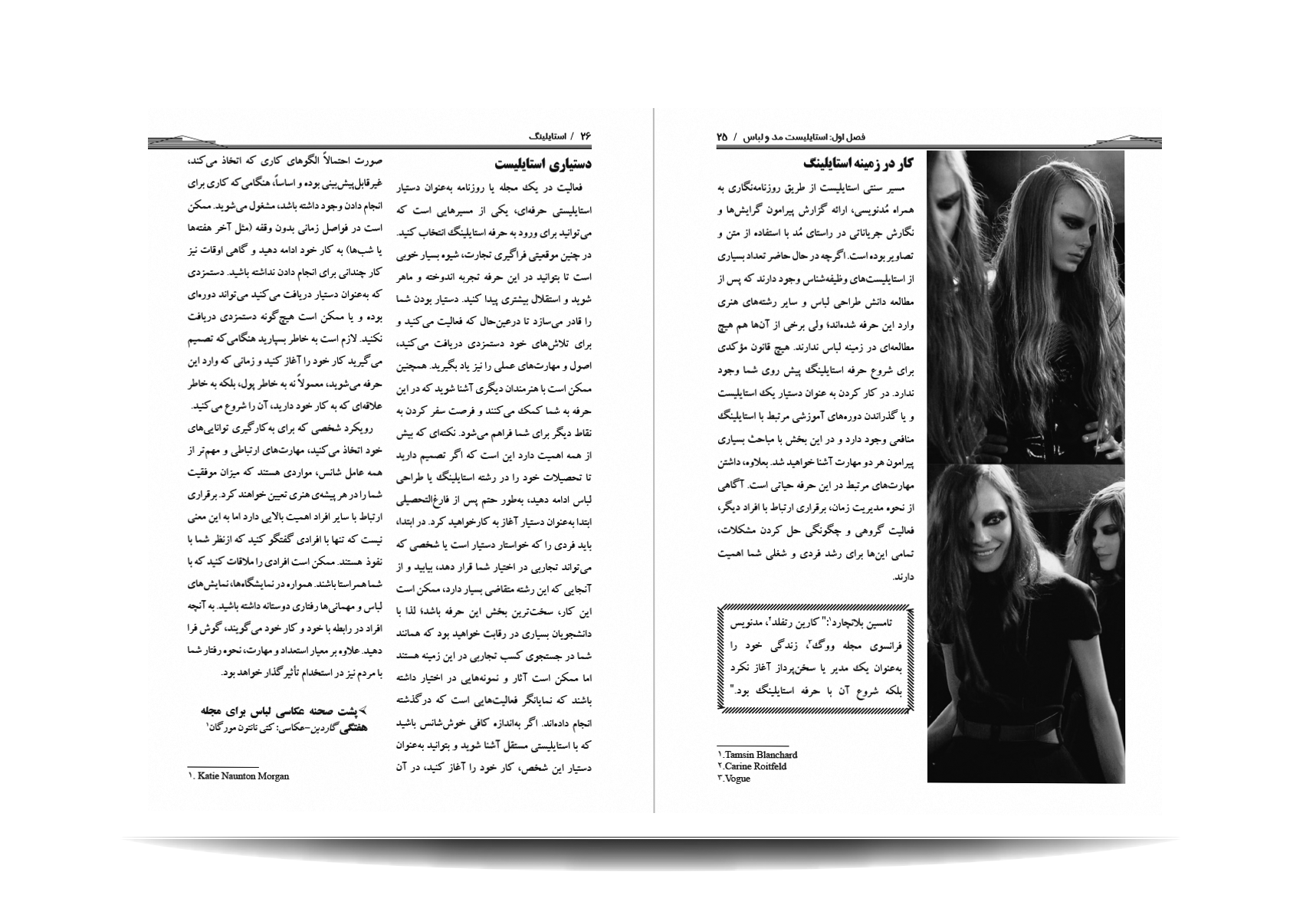 کتاب استایلینگ ایجاد یک استایل مد یا تصویر نوشته ژاکلین مک اسی و کلر باکلی با ترجمه ملیحه ملائی توسط انتشارات جمال هنر به چاپ رسیده است.استایلینگ راهنمایی جامع برای طراحان لباس و به سرعت در حال توسعه است. در این کتاب، تفاوتهای بین استایلنیگ سرمقالات، تجاری و انواع مهارتهای مورد نیاز برای این شغل به تفصیل شرح داده شده است.فرآیند عکسبرداری مرحله به مرحله طبقهبندی شده و آمادهسازی و ویرایش لباسها، روز عکسبرداری و فرآیند پس از تولید نیز شرح داده شده است. در این اثر، تصاویر مرتبط با استایلینگ به خوبی نمایش داده شده و افزون بر افراد حرفهای، دانشجویان نیز در فرآیند آفرینش آن سهیم بودهاند. این همکاری بار دیگر ثابت میکند با وجود دراختیار داشتن بودجهای محدود و تنها با خلاقیت و پشتکار میتوان آثاری زیبا و شایسته خلق کرد.