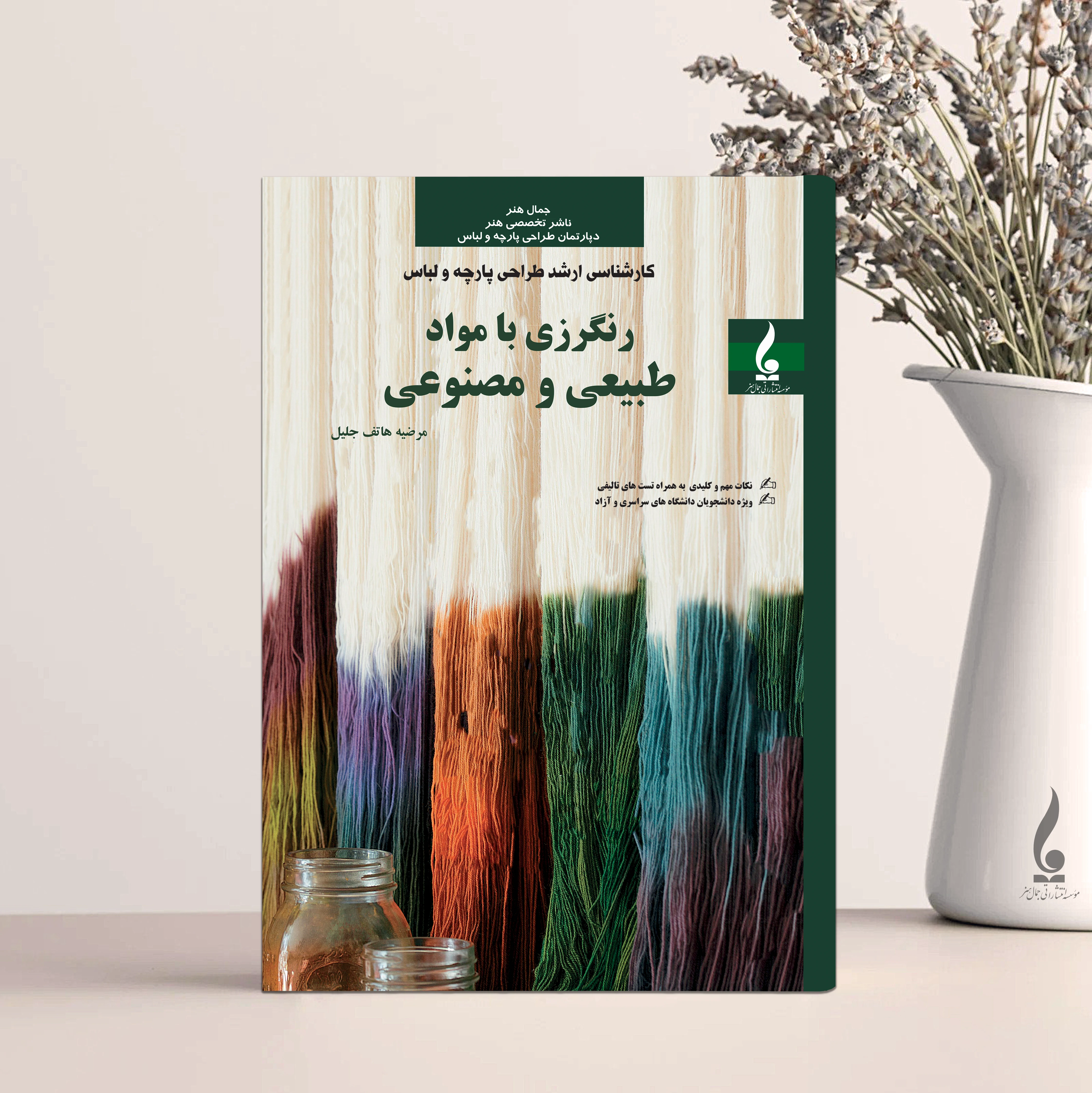 کتاب رنگرزی با مواد طبیعی و مصنوعی کارشناسی ارشد طراحی پارچه و لباس نوشته مرضیه هاتف جلیل توسط انتشارات جمال هنر به چاپ رسیده است.مباحث کتاب رنگرزی با مواد طبیعی و مصنوعی: تاریخچه رنگرزی-مقدمات رنگرزی-رنگرزی الیاف طبیعی با رنگ های طبیعی-رنگرزی الیاف طبیعی با رنگ های مصنوعی-رنگرزی الیاف مصنوعی با رنگ های مصنوعی-کارگاه سنتی رنگرزی الیاف طبیعی با رنگ های طبیعی