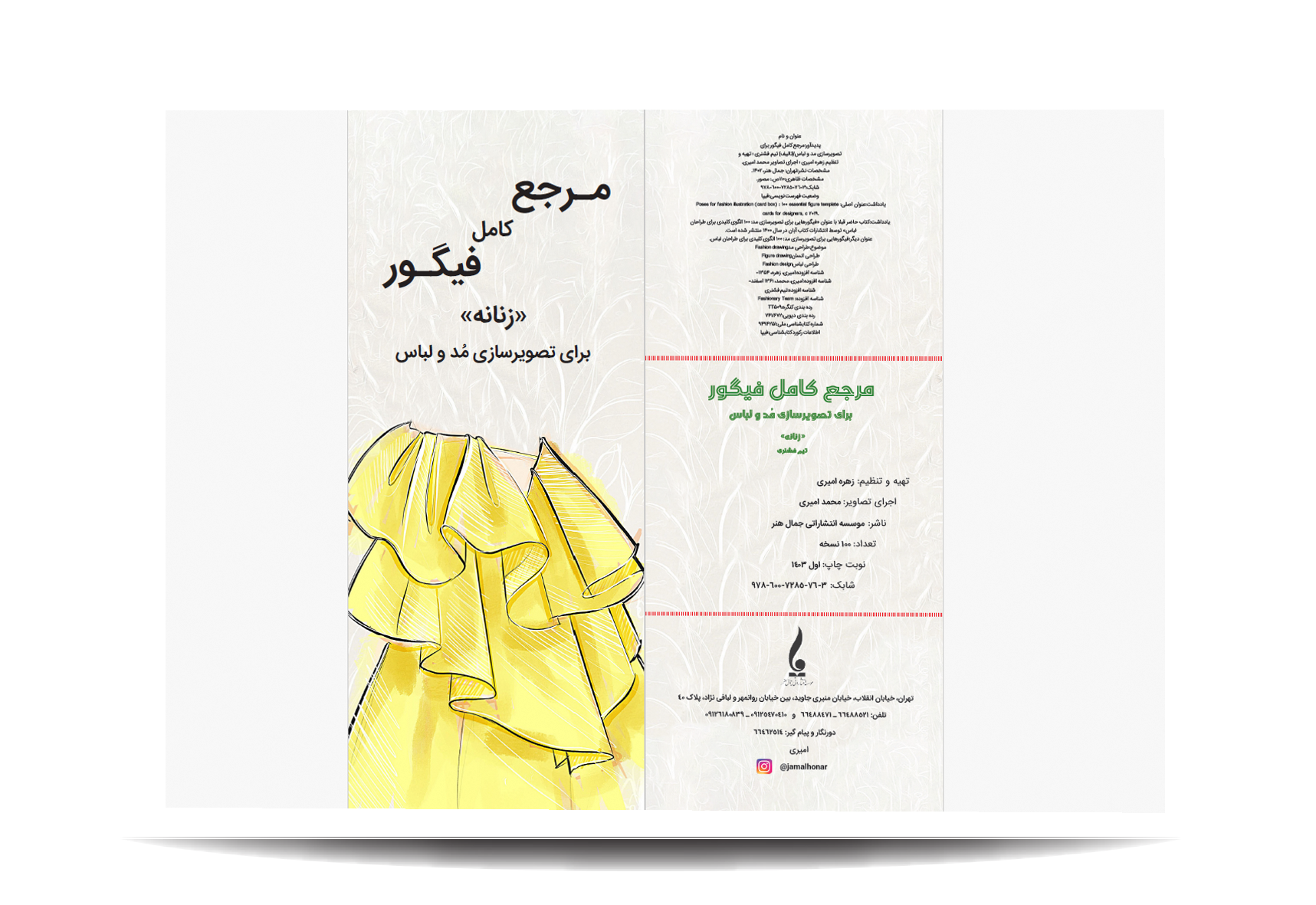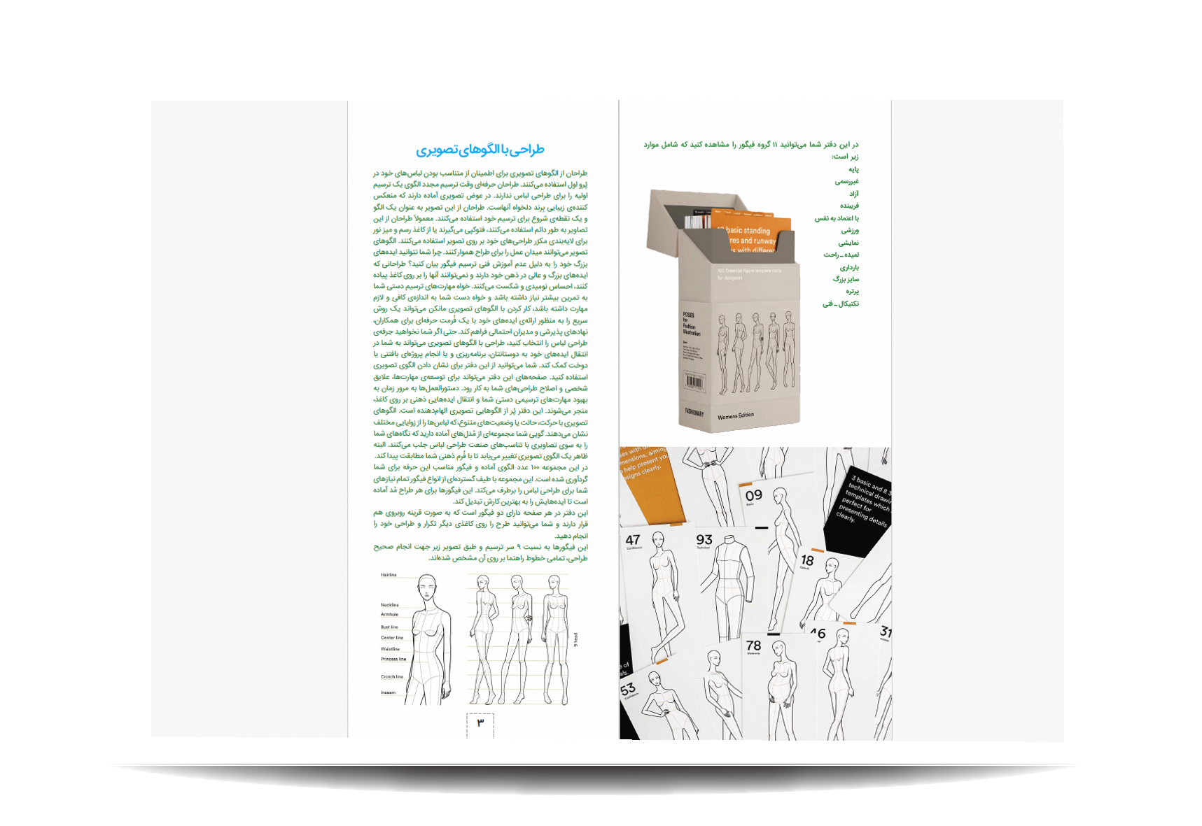 این دفتر مرجع کامل فیگور که در قطع پالتویی توسط انتشارات جمال هنر به چاپ رسیده است در برگیرنده 100 عدد الگوی آماده فیگو، مناسب این حرفه است که تمام نیازهای شما برای طراحی لباس را فیگورهای متنوع برطرف میکند. در این مجموعه انواع فیگورهای زیر گنجانده شده است: پایه-غیررسمی-آزاد-فریبنده-با اعتماد به نفس-ورزشی-نمایشی-لمیده-بارداری-سایزبزرگ- پرتر و تکنیکال