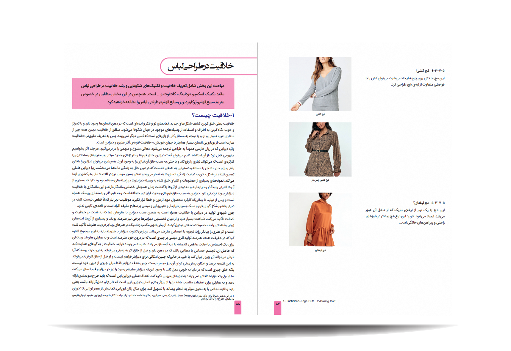 کتاب سواد بصری و خلاقیت در طراحی مد و لباس توسط اتنشارات جمال هنر به چاپ رسیده است. این کتاب منبع جامع و مفیدی جهت ارتقا سواد بصری، درک بهتر و توسعه توانایی بصری طراحان لباس است.هدف این کتاب الهام بخشیدن و توانمندسازی طراحان جهت توسعه خلاقیت شخصی و استفاده از آن به عنوان ابزاری برای دستیابی به اهداف والای طراحی لباس به خصوص در زمینه طراحی لباس مشاغل است. مباحث کتاب سواد بصری و خلاقیت در طراحی مد و لباس: سواد بصری در طراحی لباس که شامل تعادل، رنگ،سیلوئت، جزییات لباس-- خلاقیت در طراحی لباس که شامل: خلاقیت، منبع الهام -- طراحی لباس مدارس(فرهنگی)-طراحی لباس پزشکی - طراحی لباس صنعتی - طراحی لباس نظامی - طراحی لباس سایر مشاغل - طراحی لباس تک دوزی و بازاری