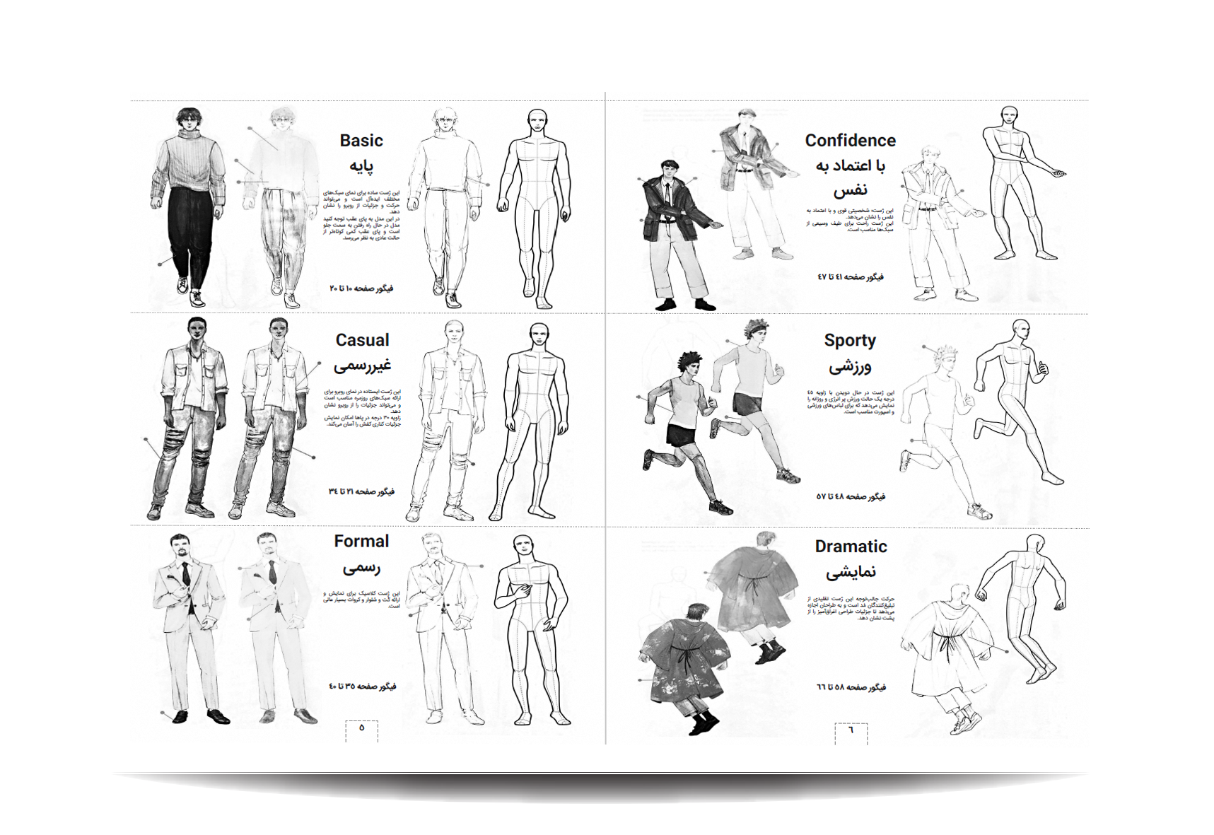 این دفتر مرجع کامل فیگور مردانه گروه فشنری که در قطع آچهارتوسط انتشارات جمال هنر به چاپ رسیده است در برگیرنده 100 عدد الگوی آماده فیگو، مناسب این حرفه است که تمام نیازهای شما برای طراحی لباس را فیگورهای متنوع برطرف می کند. در این مجموعه انواع فیگورهای زیر گنجانده شده است: پایه-غیررسمی-رسمی-بااعتماد به نفس-ورزشی-دراماتیک-لمیده-راحت-لاغر و باریک اندام مردانه-نیروند-سایزبزرگ- پرتره و تکنیکال