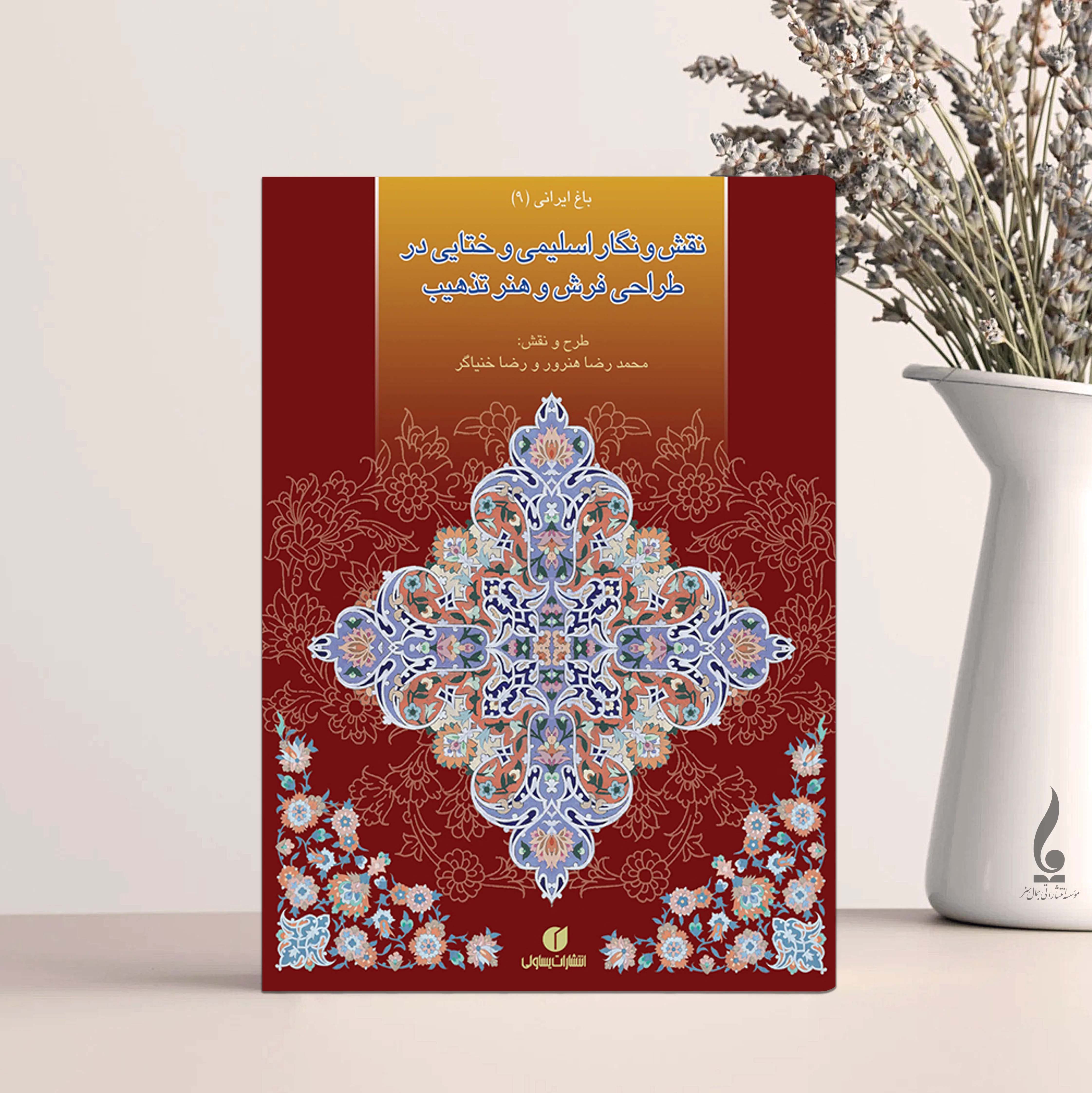 کتاب نقش و نگار اسلیمی و ختابی در طراحی فرش و هنر تذهیب نوشته محمدرضا هنرور، رضا خنیانگر توسط انتشارات یساولی به چاپ رسیده است. مباحث کتاب نقش و نگار اسلیمی: قالب ها-گره ها و برگ ها-کاسبرگ-لوتوس ها-غنچه، گل قلبی، دوبرگی گلدار، لوتوسهای گلدار، گل های ختابی-حرکت های اصلی ختایی-حرکت و محل قرارگیری گلهای ختایی -نمونه طرح های ختابی-گردش گل های ختایی-قالب های اصلی در تذهیب-تقسیم بندی قالبهای اصلی تذهیب-کادرها-قالبهای کلی طرح شمسه=حرکت های اصلی در اسلیمی=اسلیمی دهان اژدری=طرح های اسلیمی=اسلیمی ماری و ابری حاشیه=گره چینی=طرح نشان=ترنج=لچک=حاشیه=کتیبه=تاج یا سرلوح و ...