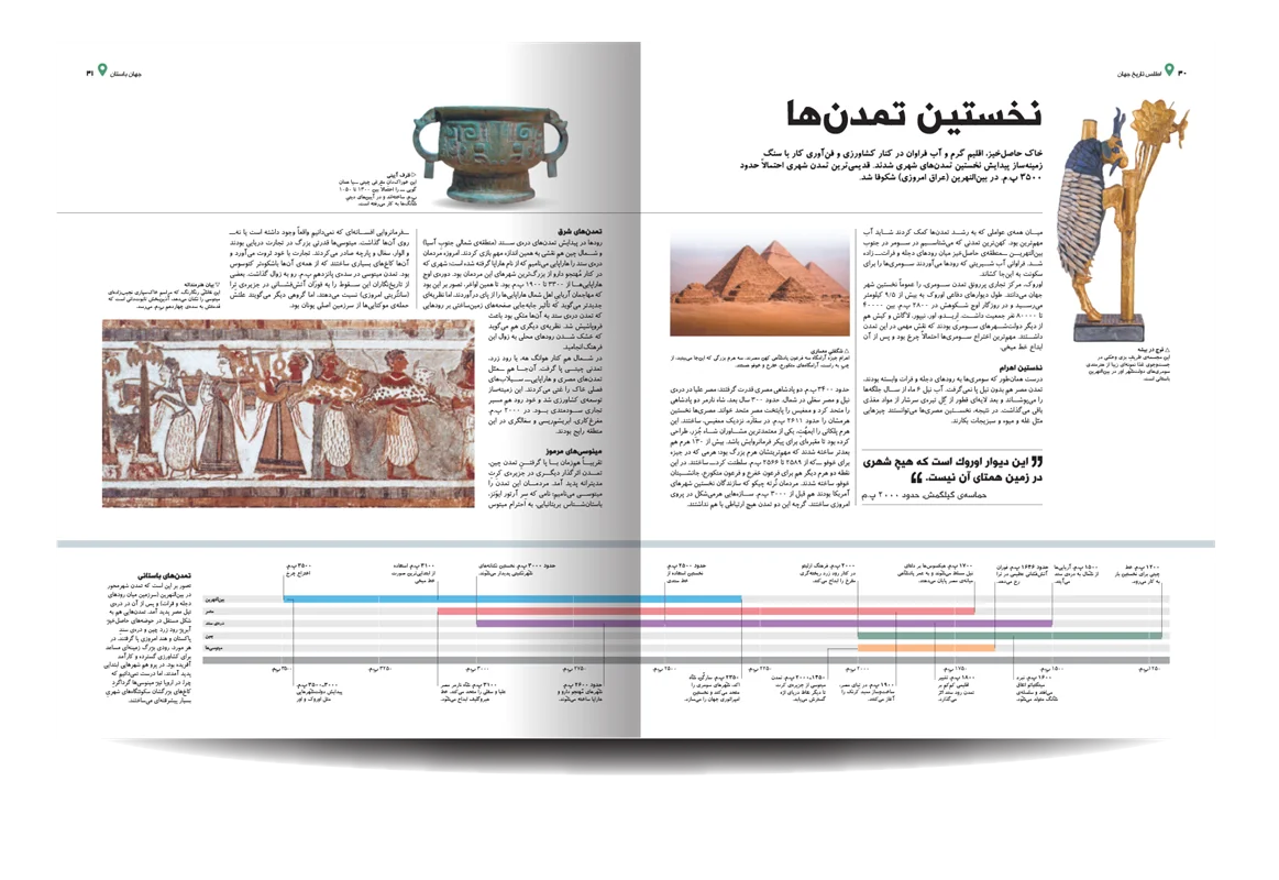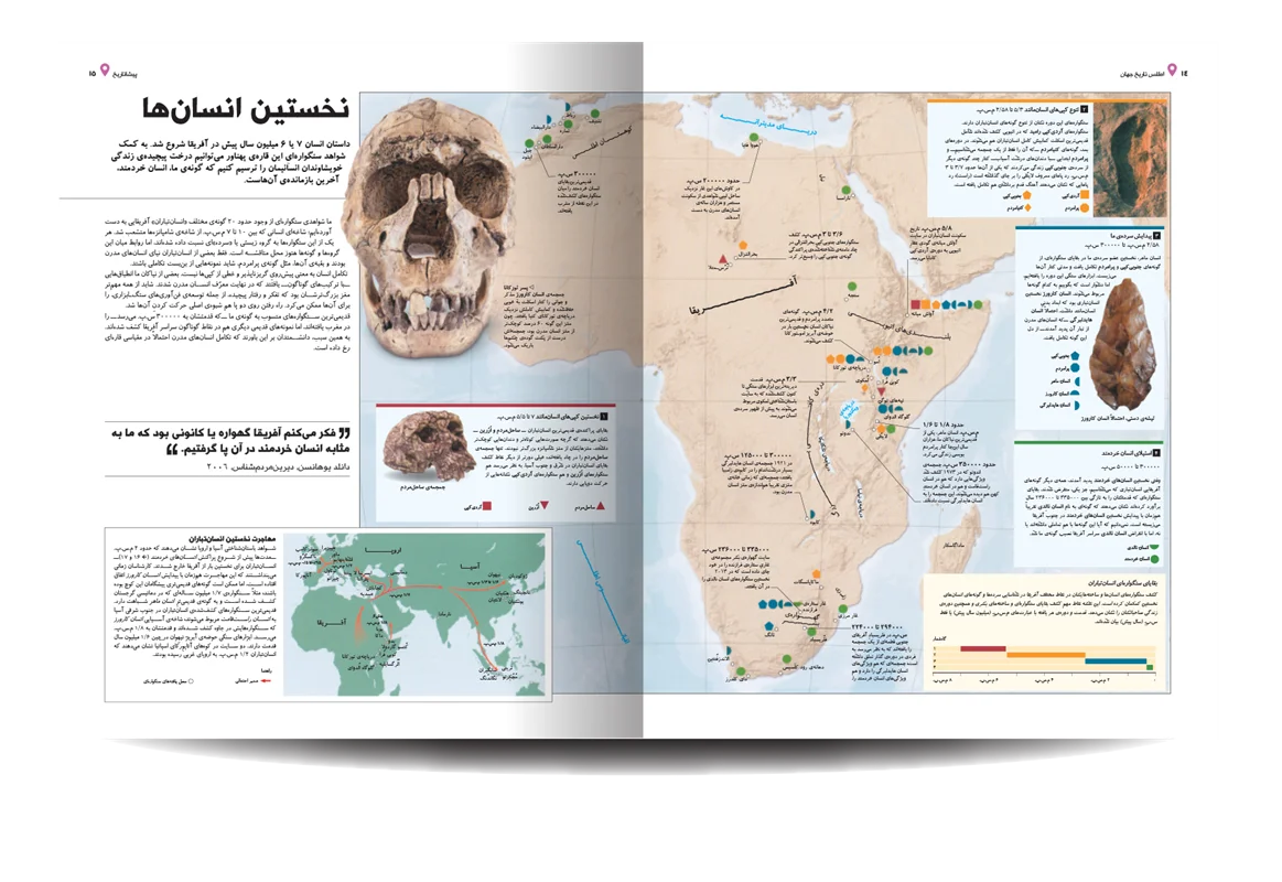 نقشه ها فقط به ما نشان نمی دهند که کجا برویم ، بلکه به ما نشان می دهند که کجا بوده ایم. مروری خیره کننده بر تمام تاریخ بشر ، در کنار هم با 140 نقشه ی فوق العاده.در کتاب اطلس تاریخ جهان بیاموزید که چگونه چیزی مانند ماشین چاپ می تواند زمانی را تعریف کند ، یا چگونه متفقین در اروپا می توانند نازی ها را شکست دهند. در این کتاب تاریخی قابل توجه چیزهای زیادی برای خواندن وجود دارد ، و دقیقا به همان اندازه که نیاز است تا بررسی شود.نقشه ها چیزی بیشتر از توپوگرافی زمین یا مرزهای کشورها هستند. نقشه ها می توانند نشان دهنده حرکت افراد و ایده ها باشند و راهی منحصر به فرد برای توضیح مضامین تاریخی و کاوش در دوره های گسترده زمانی را ارائه می دهند.