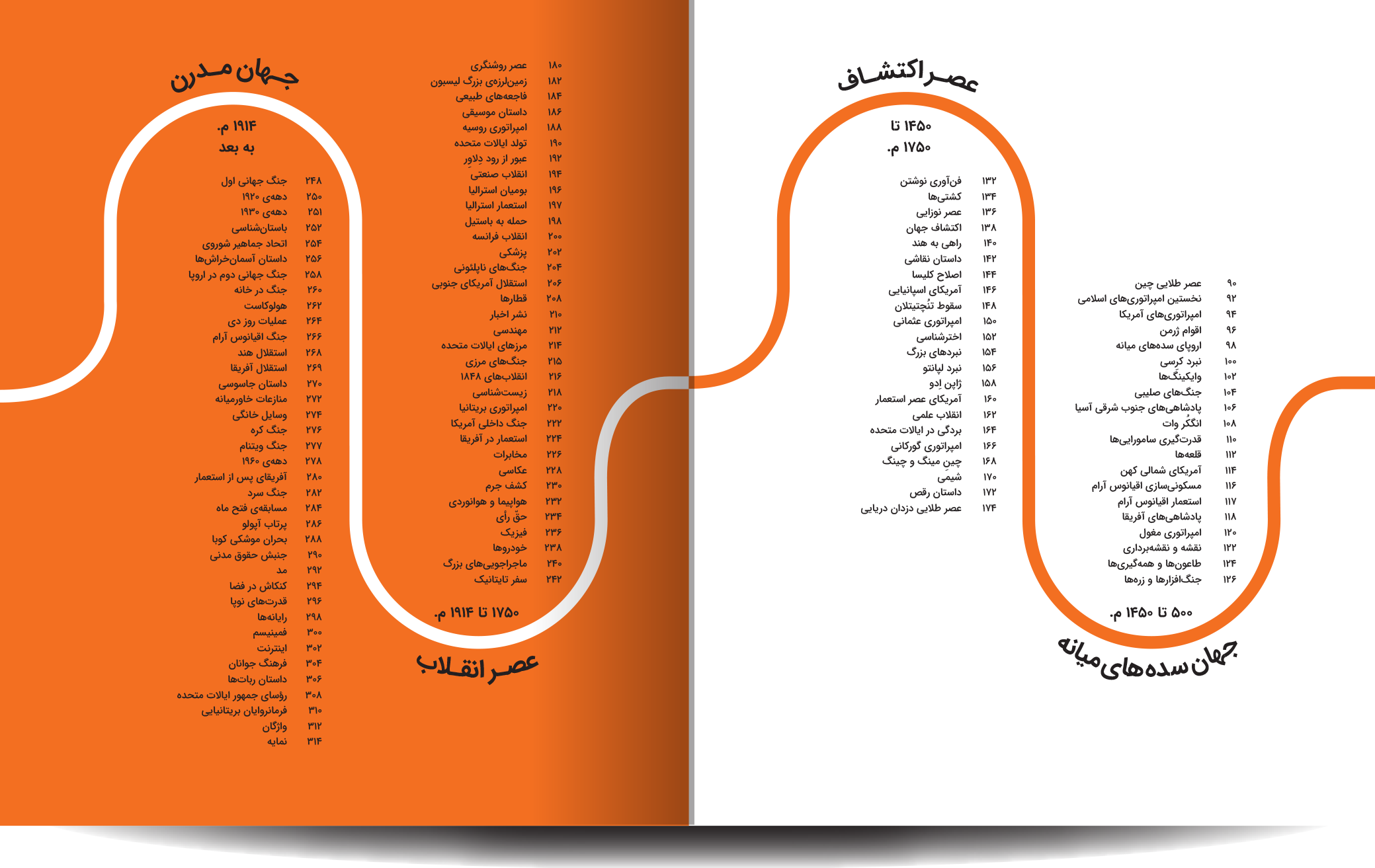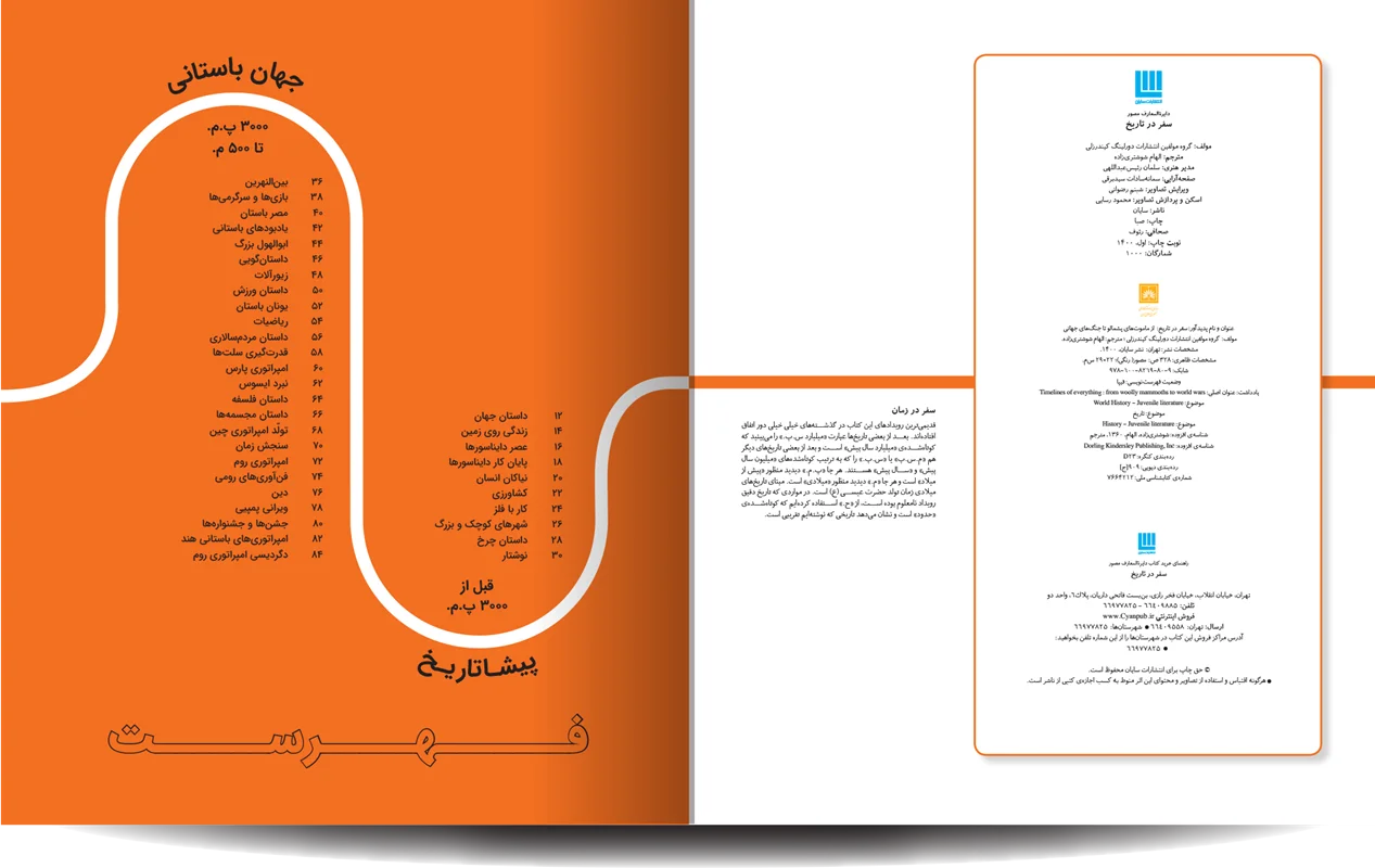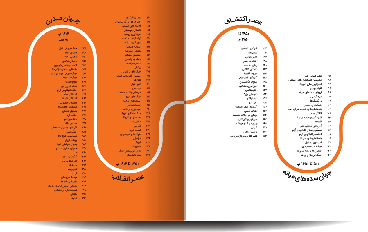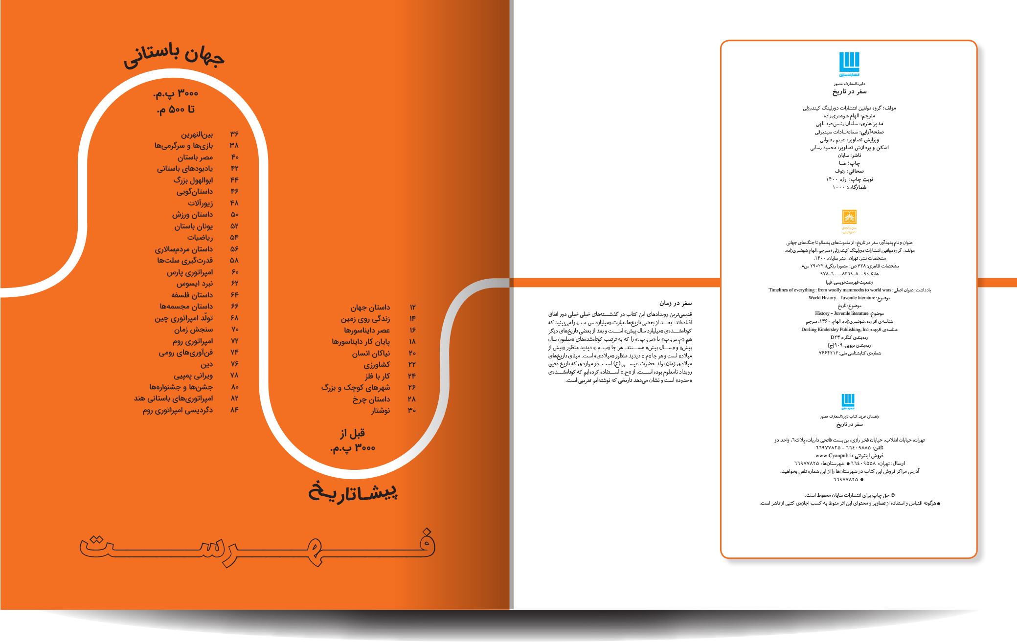 13 میلیارد سال تاریخ را با نشستن در خانه ی خود کاوش کنید! در زمان سفر کنید و کشف کنید که چگونه برخی از بزرگترین رویدادهای جهان رخ داده است.از بیگ بنگ تا عصر دیجیتال، این دایره المعارف بصری باورنکردنی برای کودکان تقریبا همه چیزهایی را که تا به حال در تاریخ اتفاق افتاده است به شما نشان می دهد.با سفر در بیش از 130 جدول زمانی خیره کننده، تاریخچه ی جهان زنده می شود. مملو از عکس ها و تصاویر فوق العاده، همراه با متن آموزنده و حقایق سرگرم کننده. این کتاب از تاریخ ظهور و سقوط امپراتوری ها را پوشش می دهد تا پیشرفت های علمی و اختراعات پیشگامانه ای که زندگی ما را تغییر داد.این کتاب آموزشی روشی تخیلی برای به تصویر کشیدن تاریخ جهان برای کودکان 8 سال و بالاتر است. در طول صفحات، فرزند شما با خونخوارترین دزدان دریایی تمام دوران ملاقات می کند و آنچه را که در طوفان باستیل اتفاق افتاده است، کشف می کند.