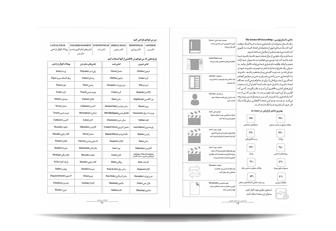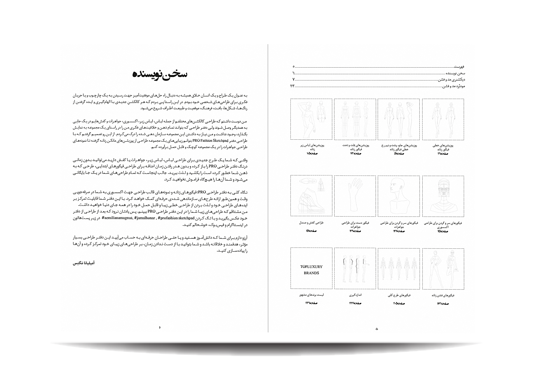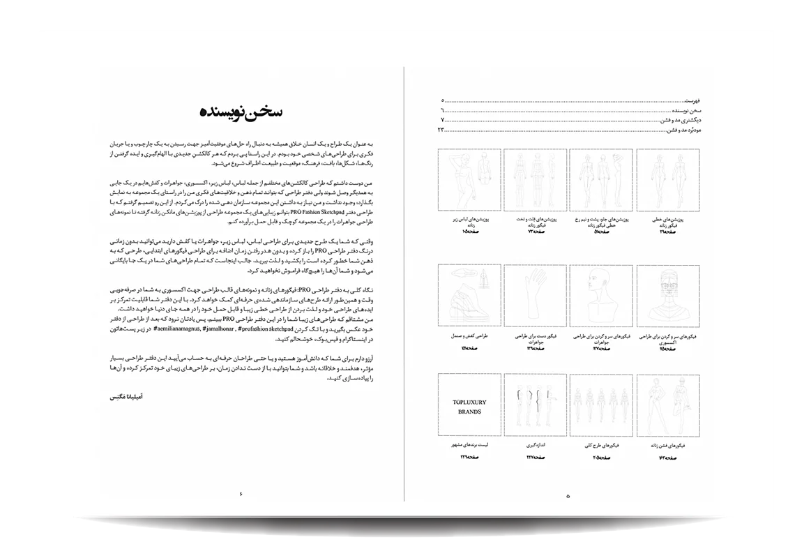 کتاب پروفشن اسکچپد توسط انتشارات جمال هنر به چاپ رسیده است. معرفی مباحث کتاب پرو فشن اسکچ پد:دیکشنری مد و فشن-پوزیشن های خطی فیگور زنانه-پوزیشن های جلو، پشت و نیم رخ خطی فیگور زنانه-پوزیشن های فلت و تخت فیگور زنانه-پوزیشن های لباس زیر زنانه-پوزیشن های سر و گردن برای طراحی اکسسوری-پوزیشن های سر و گردن برای طراحی جواهرات-پوزیشن های دست برای طراحی جواهرات-طراحی کفش و صندل-فیگورهای فشن زنانه-فیگورهای طرح کلی-اندازه گیری-لیست برندهای مشهور